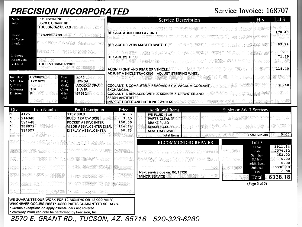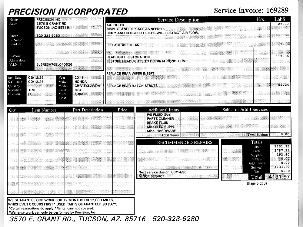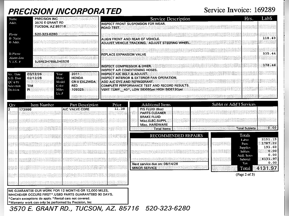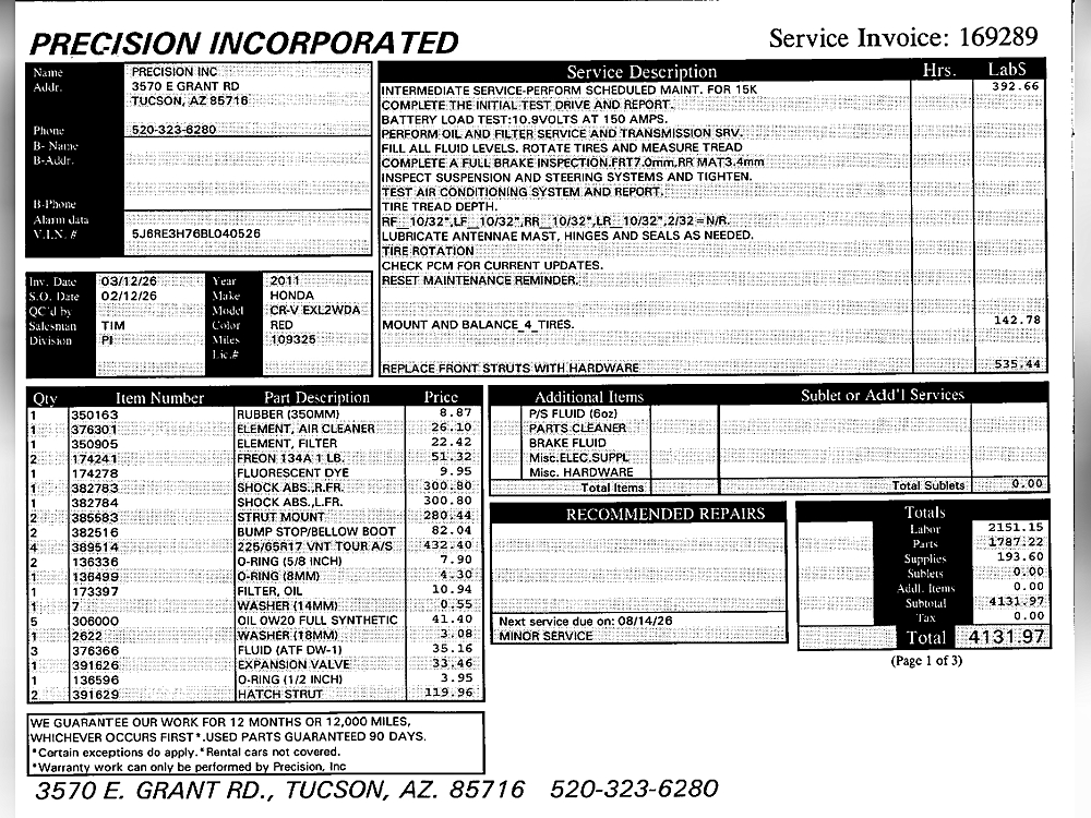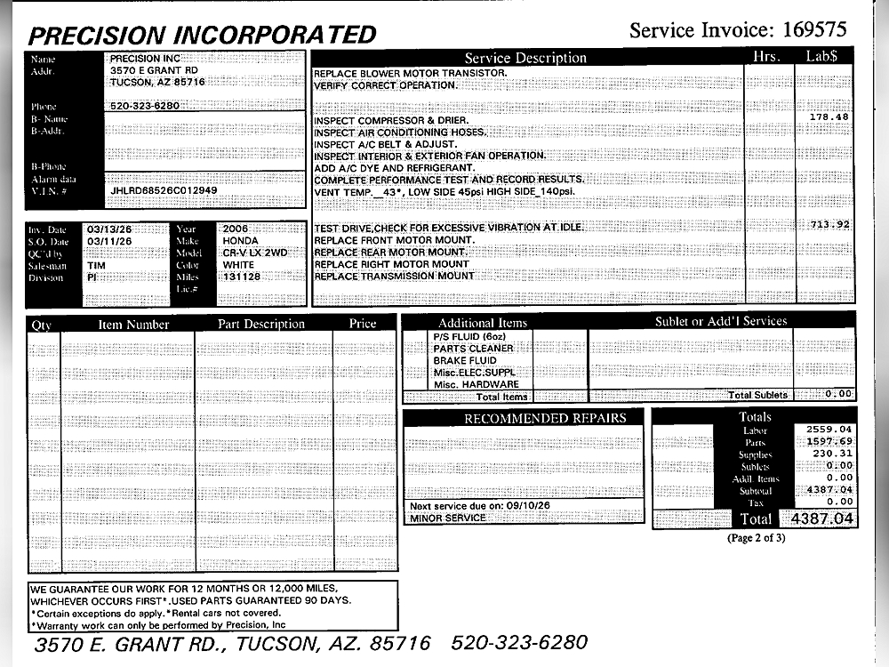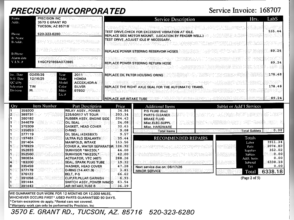I have been a customer of Precision for over 15 years. Always great service. I also buy my used vehicles from them. Precision is where i'd go for pre-purchase inspection anyway.
