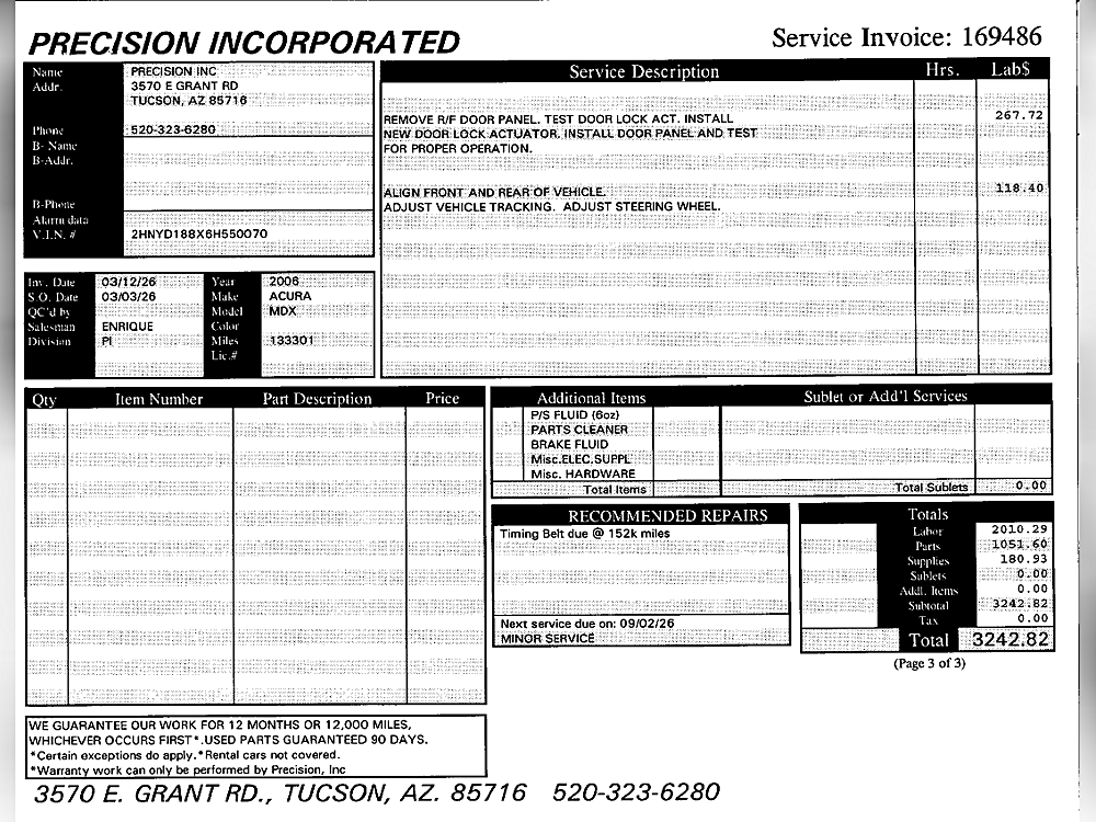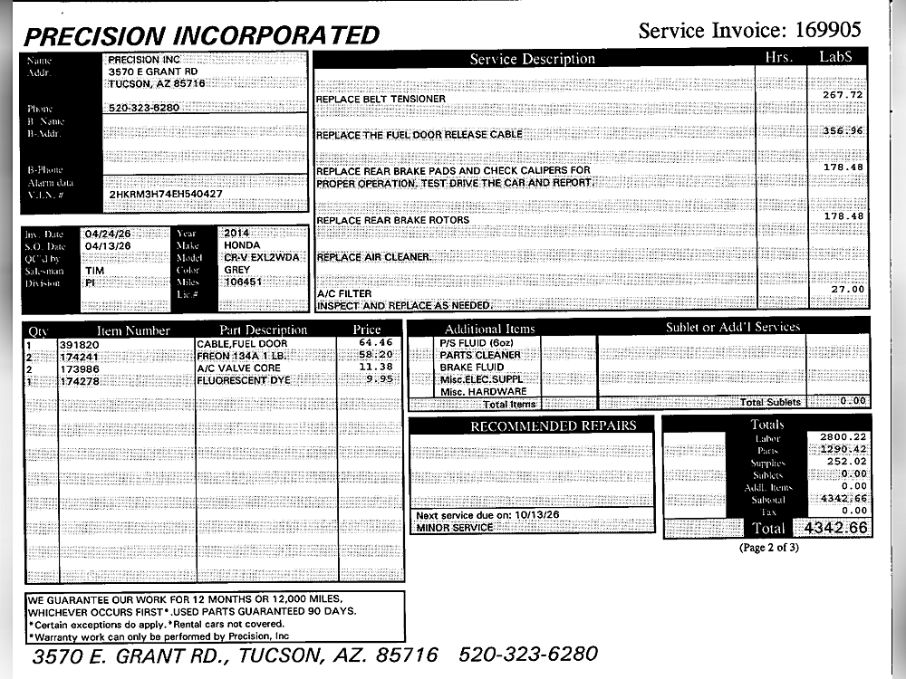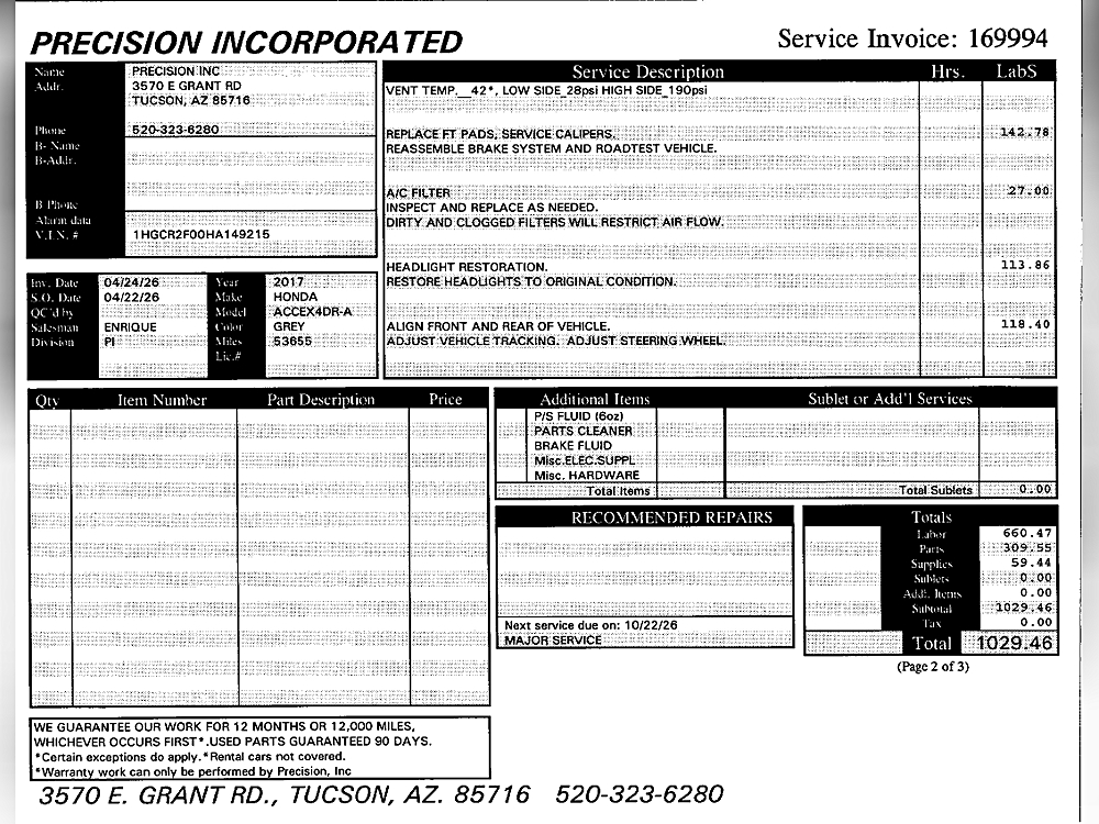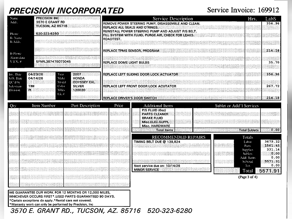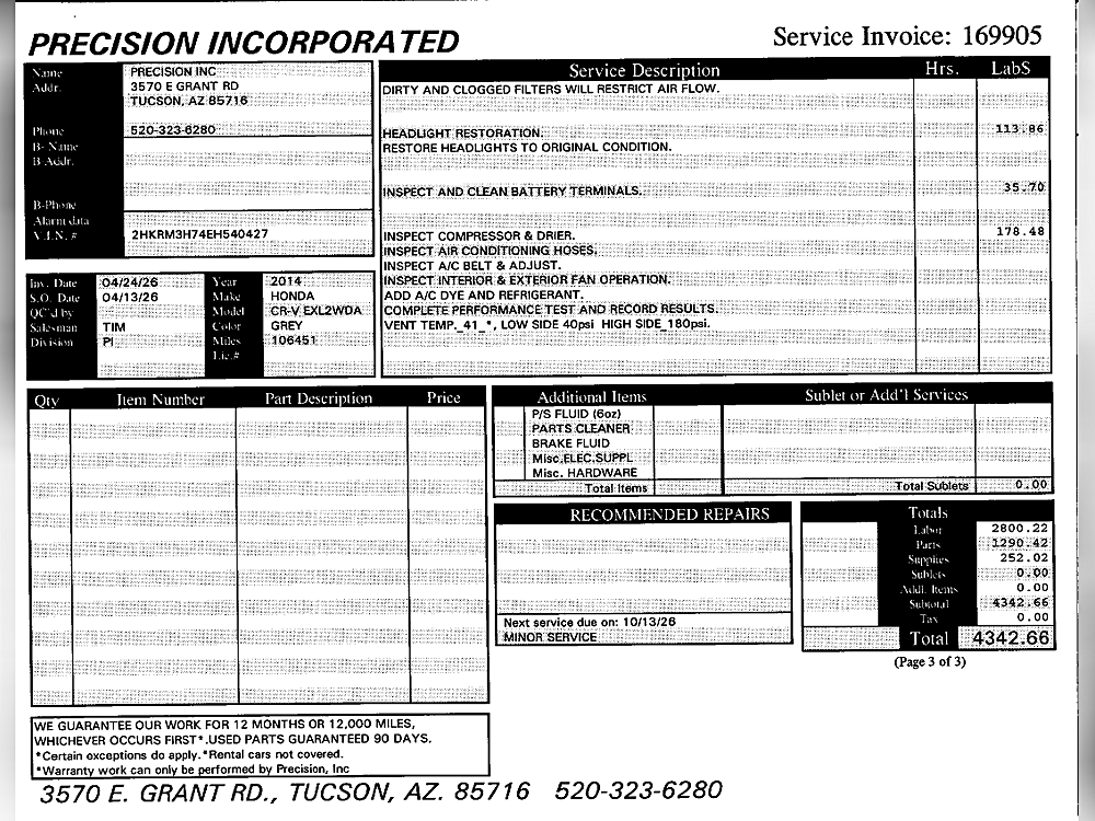 AMAZING HONEST PEOPLE. I bought a 2008 Honda Odyssey here earlier this year for my growing family. It was used but they had just done alot of work on it. Shortly after purchase I noticed some mechanical issues. I notified Mike who told Tim and they assessed the issue and they went above and beyond. Both Mile and Enrique worked on the van and made me feel heard. As a female I often recieve rolling of eyes and men usually don't believe me, but Mike and Enrique listened and fixed the issues I was concerned about, my vehicle will undoubtedly live a long life now, safe for my four children. I highly recommend this dealership, and Dawn who helped me in the sales aspect. Very nice woman who has a talented son. She also listened to my initial price concerns and we came to a very fair agreed upon price for the Vehicle. Overall very Honest people, it's hard ro find people like this these days. If I ever need another vehicle I would go to them (although they might be hesitant, after all the work they did UNDER WARRANTY, for me) Thank You Precision auto for everything, you eased this pregnant lady's mind.